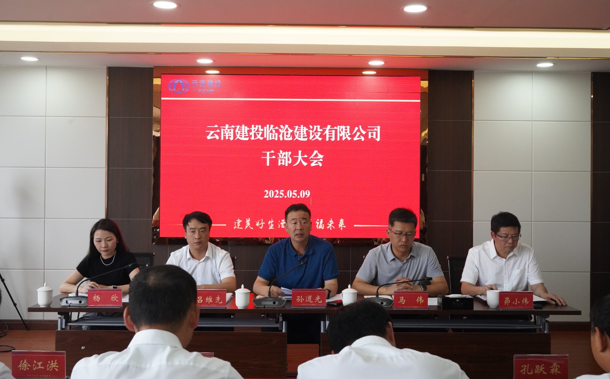 5月9日下午,临沧公司召开干部大会,宣布公司党委关于临沧公司中层干部的任免决定,公司党委书记、董事长,临沧公司执行董事孙道光出席会议并讲话?;嵋橛晒镜澄?、副总经理,临沧公司党总支书记、总经理马伟主持。