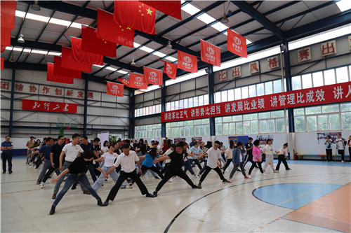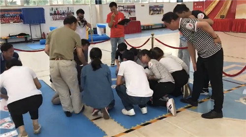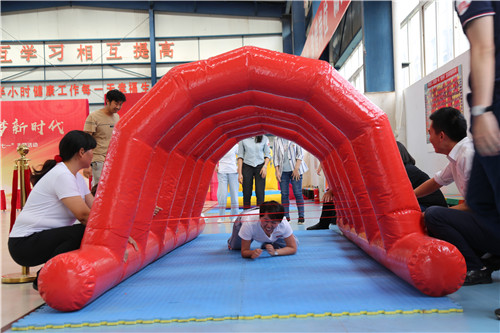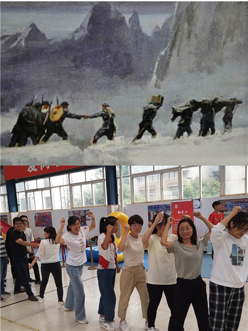 党课后,参会人员来到公司篮球馆参与主题党建活动?;疃莩ふ髀废叩闹匾氐愫头⑸闹匾录?,设置了“翻雪山”、“过草地”、“飞夺泸定桥”、“遵义会议”“四渡赤水”、“激战腊子口”、“三军会师”等七个游戏,参加活动的人员随机组建成“薪火相传”、“铮铮铁骨”、“众志成城”、“百炼成钢”、“勇往直前”五支队伍参与活动。