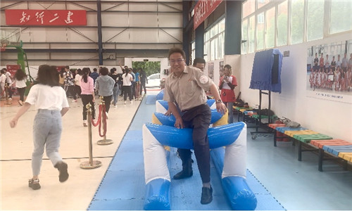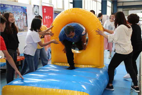 ▲游戏“飞夺泸定桥”(集体通过独木桥和障碍物)