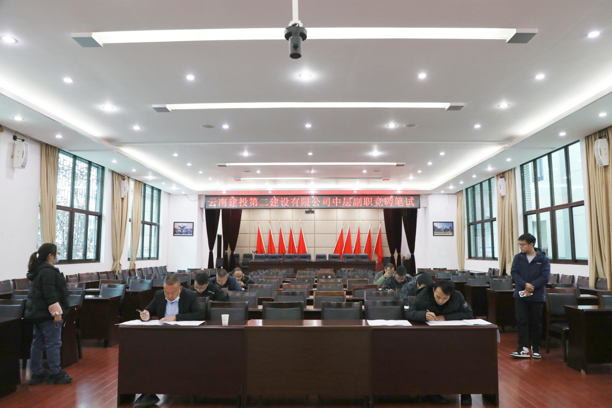 本次竞聘选拔由公司党委全面领导,考评领导小组办公室设在公司党委工作部,负责组织笔试、面试,统计成绩并向公司党委及考评领导小组汇报。竞聘笔试已于12月6日在公司一楼会议室举行,共有来自基层单位、职能部门的8名应试者参加笔试和面试。面试结束后,考评组工作人员将汇总成绩,并提交公司党委研究,确定人选。