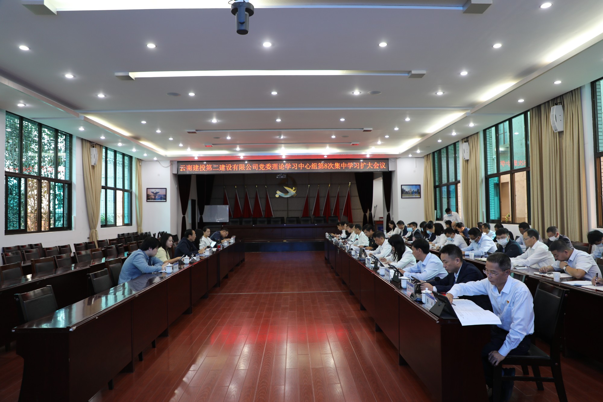 9月20日上午,公司党委召开2022年理论中心组第8次集中学习扩大会议,集团党委理论学习中心组列席旁听第二组副组长、总承包公司党委书记、副董事长李曙斌携集团党委理论学习中心组列席旁听第二组成员出席会议,公司领导班子、扩大班子成员,职能部门负责人,部分党支部书记参加会议,会议由公司党委书记、副董事长万向遵主持。