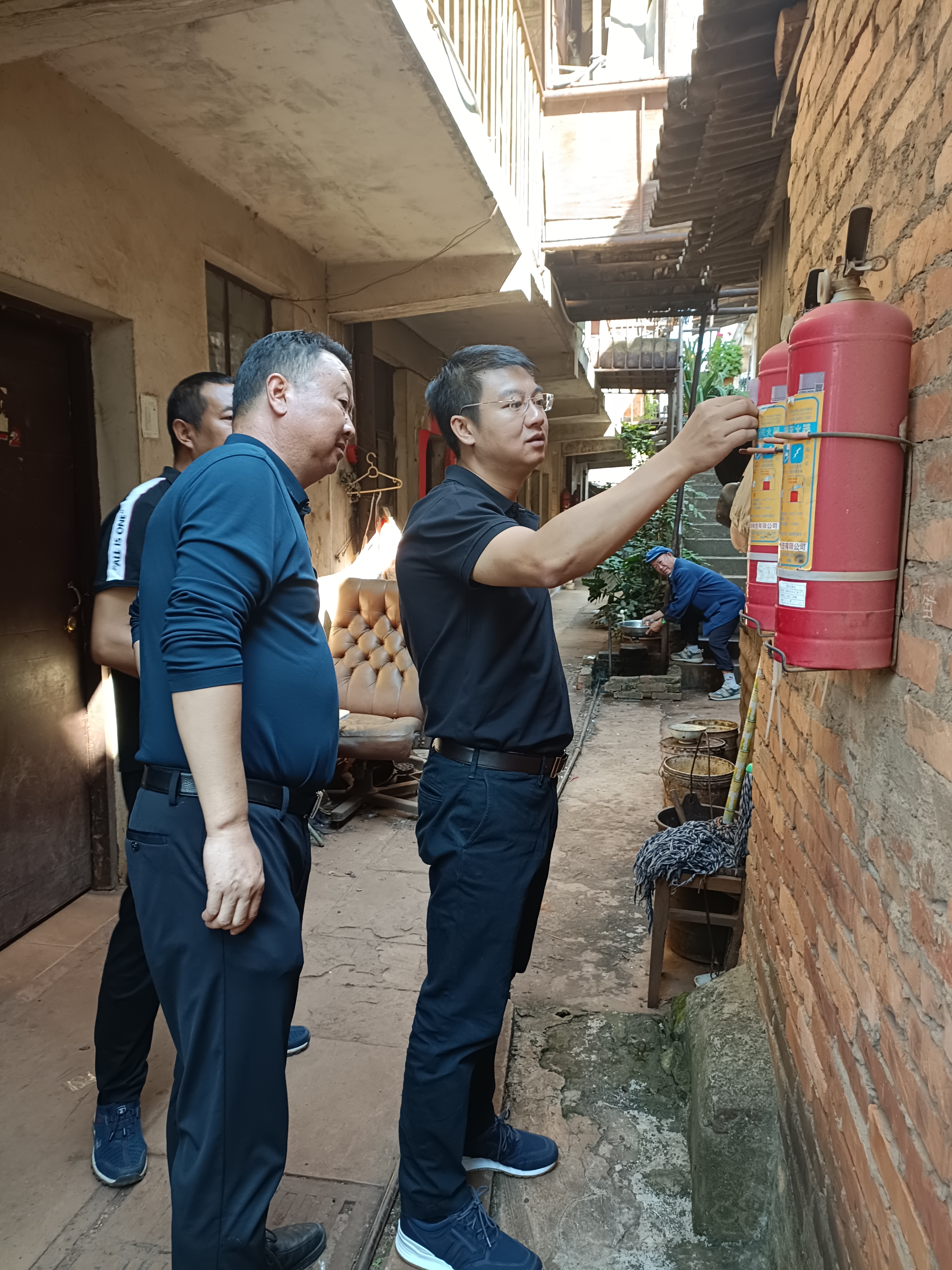 万向遵一行首先来到公司最为老旧的原四处生活区,万向遵询问了居住人员的大概情况并对居民的用水用电情况进行了了解,还特别对生活区的消防器材的布置情况,器材是否能正常使用进行了检查。