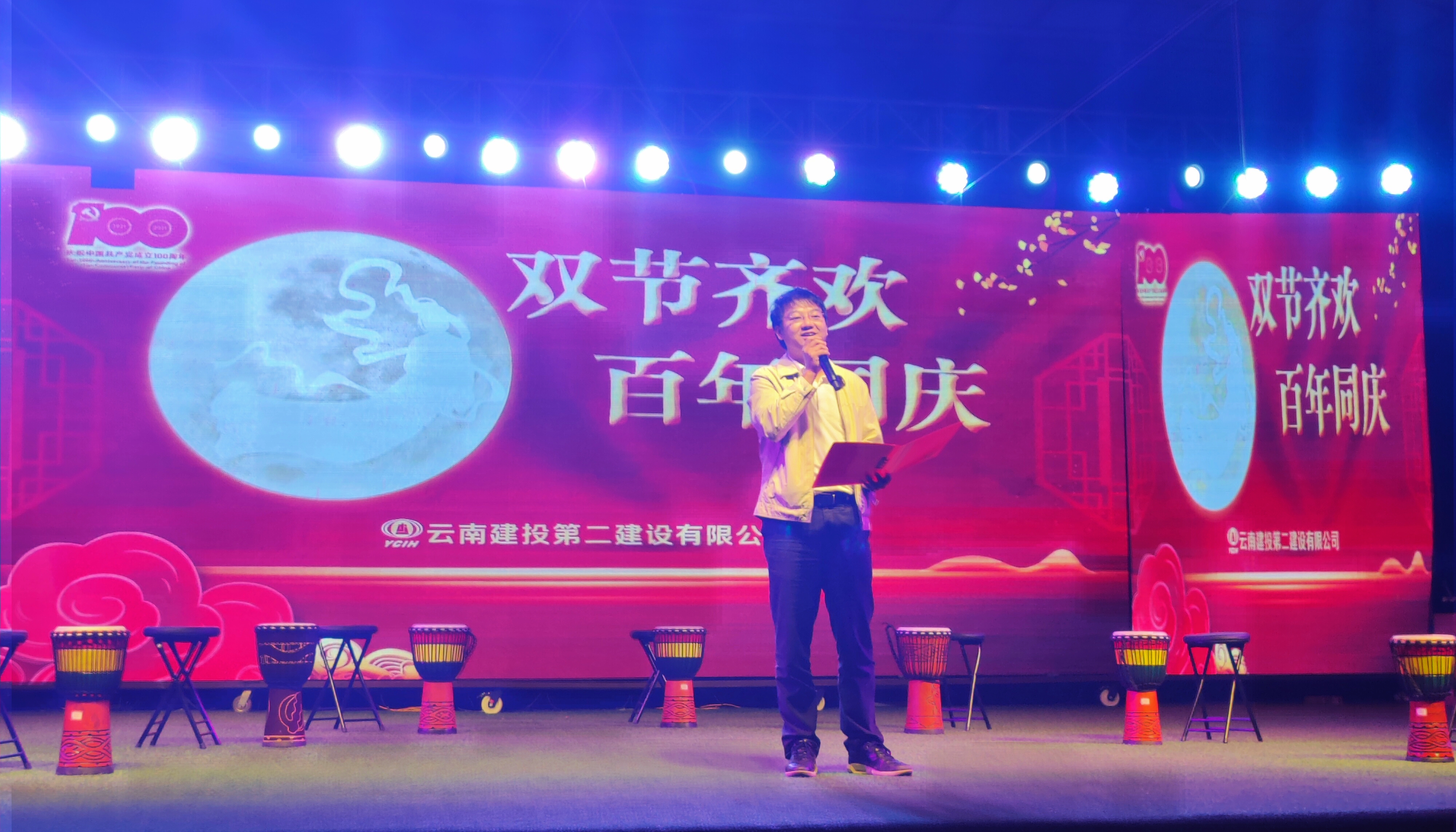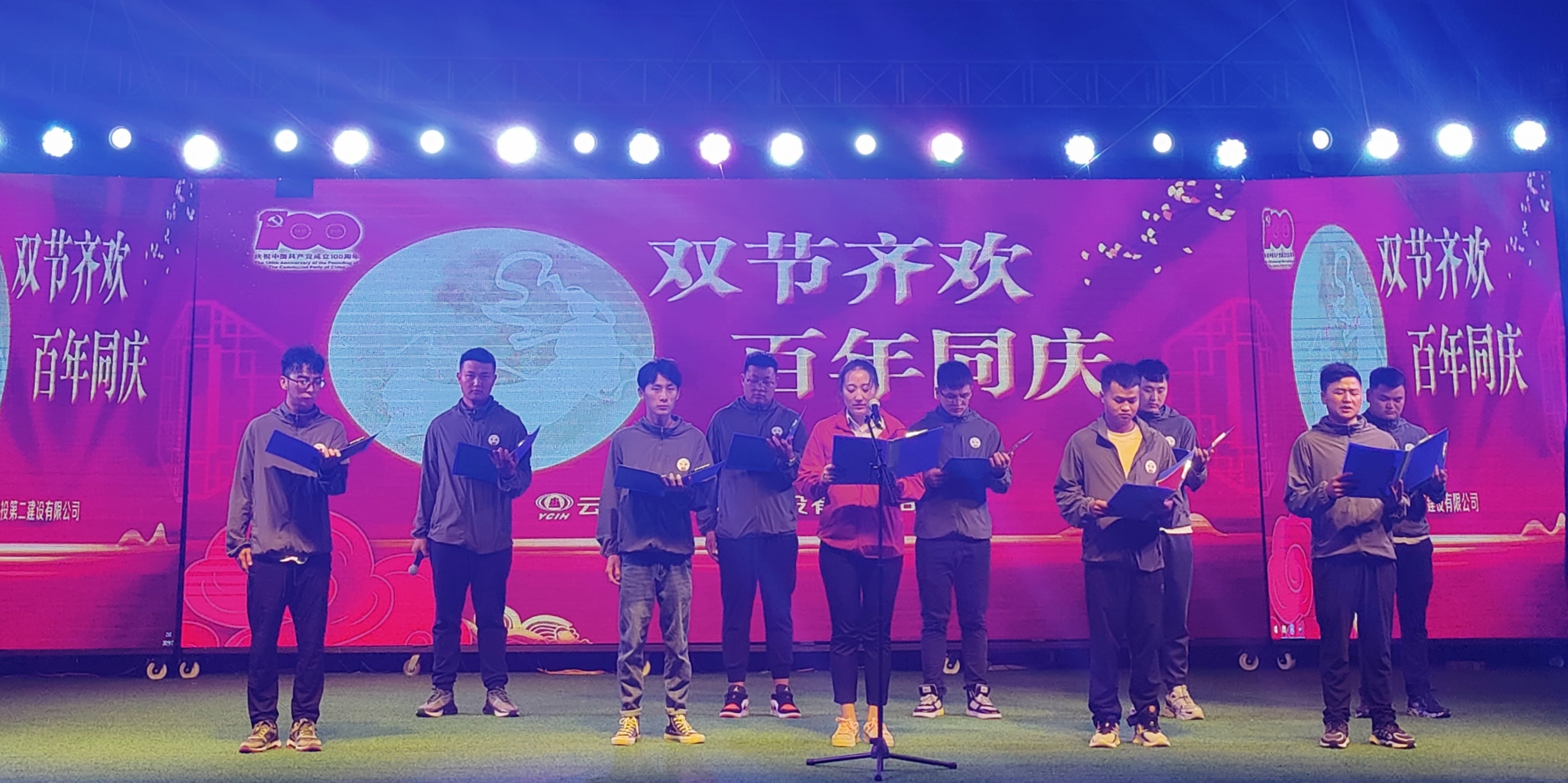 晚会上,慰问组成员为大家带来了精彩的舞蹈与弹唱节目,大理片区的各参建单位也献上各自的才艺表演,包含了开场舞《全民健身操》、歌曲《七月火把节》、琵琶弹唱《青花瓷》、诗朗诵《初心不改、继往开来》等节目,现场营造出了欢乐、昂扬、奋进向上的氛围。