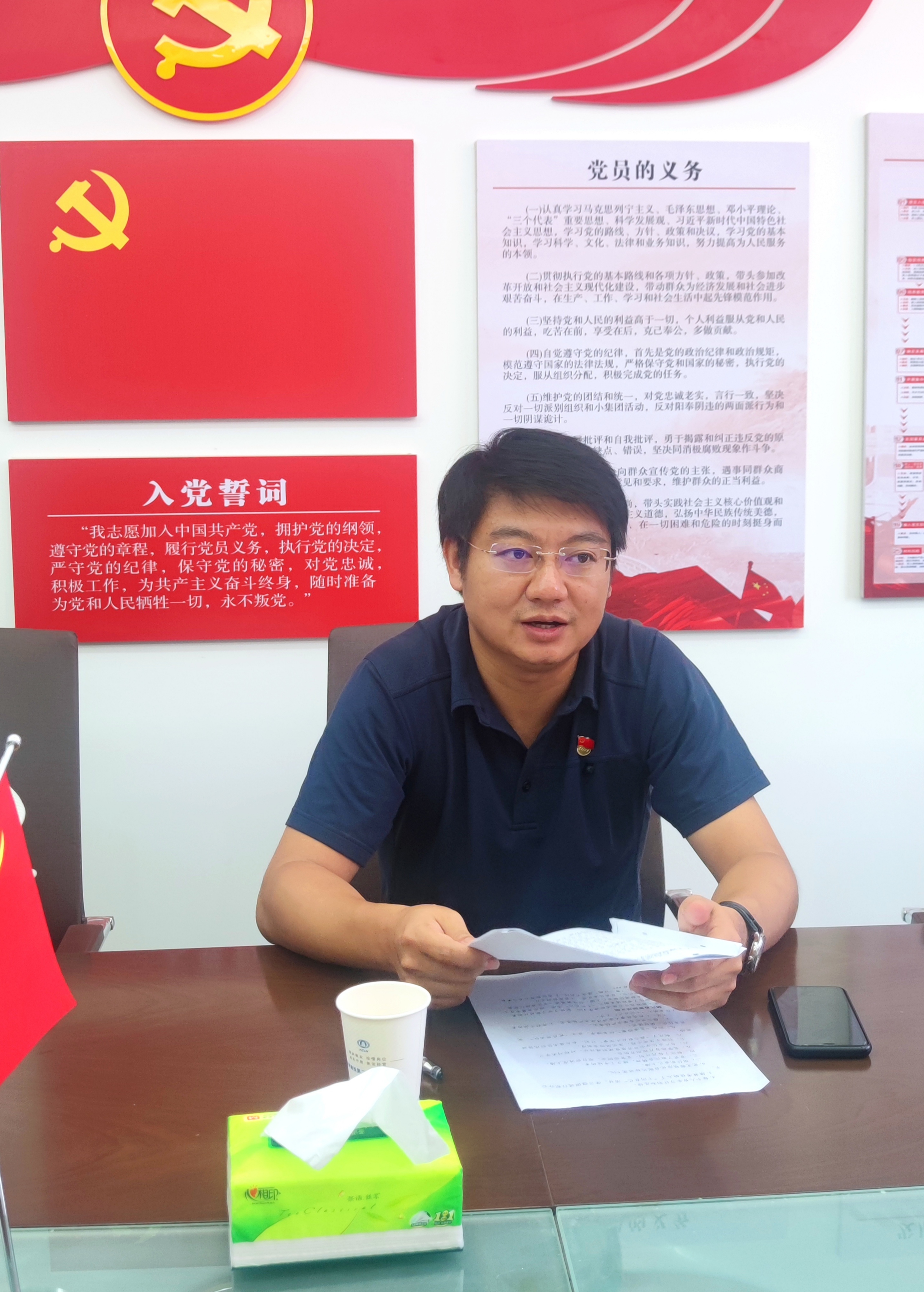 7月6日下午,公司党委书记、副董事长万向遵,人力资源部部门负责人,党委工作部相关负责人一行到第九直管部就深化细化实化合格管理人员“十问自己”活动开展情况进行调研指导,会议由党支部负责人主持,党支部在昆班子成员、党员及职工代表参与。