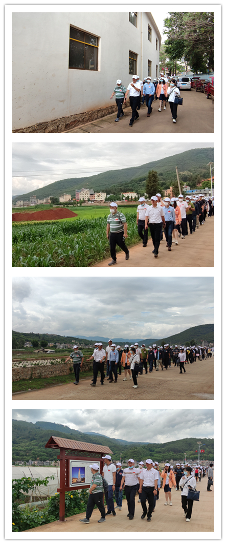 下车后,大家整装出发,重走长征路。长征好似一篇宣言书,它向所有人宣示着红军的伟大与英勇,它向中国人民宣示:红军的道路就是解放的道路,能够通往光明的未来。虽然脚下的路已是干净平坦的水泥路,但是所有人都知道,过去可不是这样的路。路,从无到有,从小到大,从艰险到平坦,它的背后隐藏了多少人的身影,淹没了多少人的面孔,执着前行,哪怕刀山火海,哪怕永无回头……