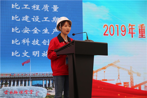 会上,公司工会主席胡云红宣读了《公司工会2019年重点项目劳动竞赛方案》,公司团委副书记杨欣宣读了《公司2019年重点项目青年突击队竞赛活动实施方案》。参赛代表和青年突击队代表分别作了表态发言,参会领导为所有参赛队伍和青年突击队授旗。