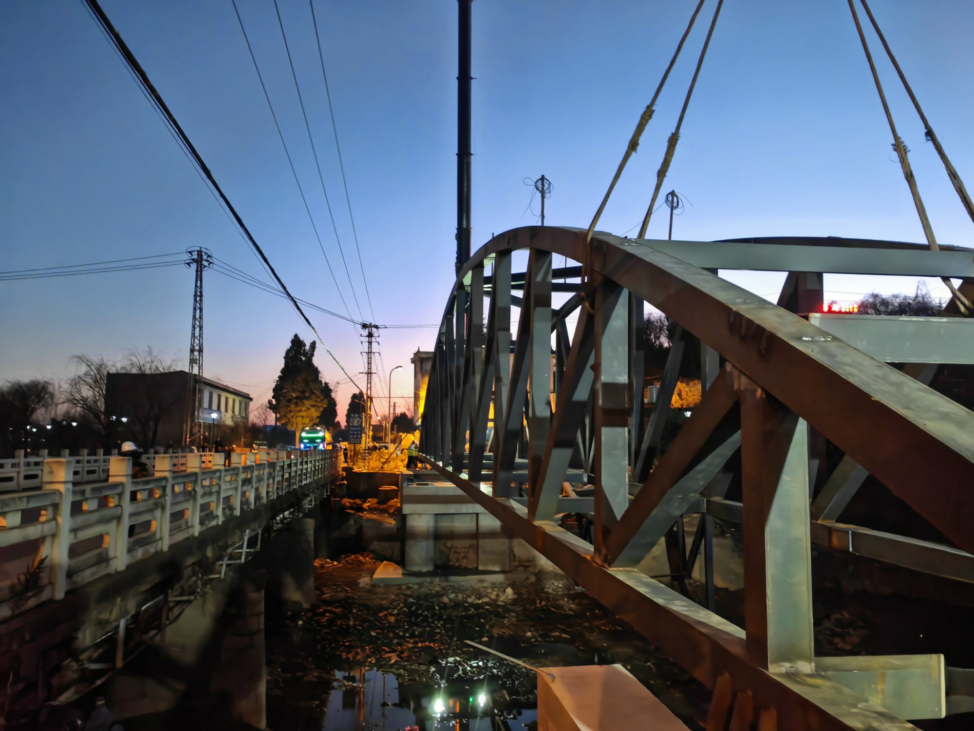 据悉,此桥梁位于龙西路与龙湫路交叉口,横跨马龙河,最大跨距43m,结构形式为钢桁结构桥,桥梁吊装重量为47吨。