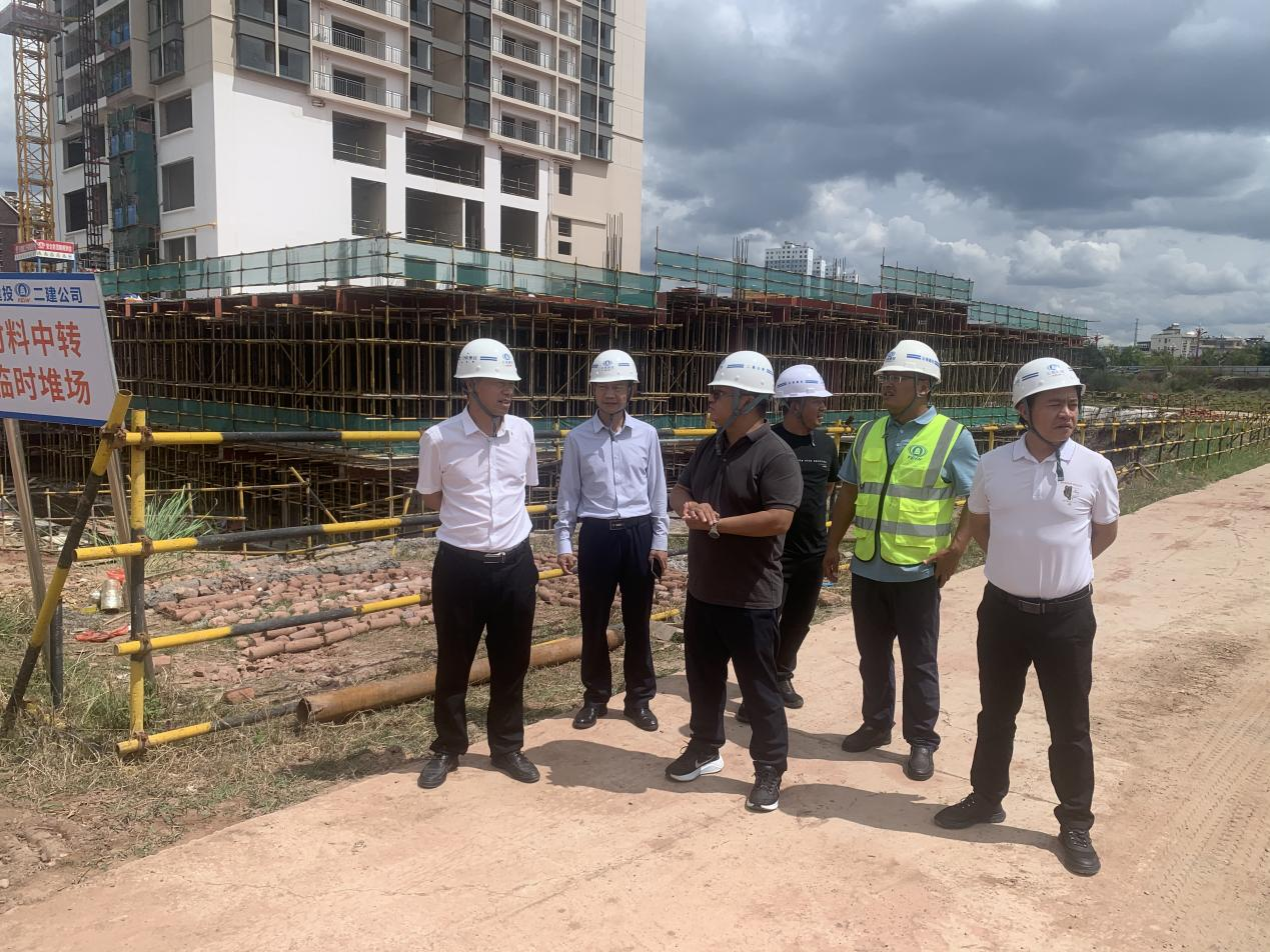 5月25日,公司党委副书记、董事长陈定华,党委书记、副董事长董学友带领相关职能部门负责人到第十直管部承建的楚雄新航鸿雅房地产开发建设项目(3#、5#、6#)调研,检查指导工作。